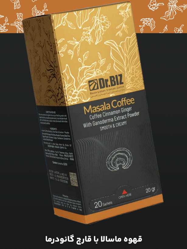 ترکیبات پودر قهوه عربیکا چای سیاه شکر دارچین زنجبیل هل.